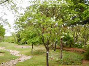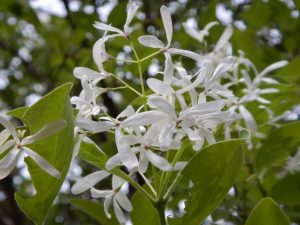 ◆ヒトツバタゴ(ナンジャモンジャノキ):咲き始め  場所:陽だまりの丘、花の谷、移ろいの庭ほか