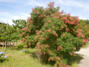 スモークツリー(場所: 移ろいの庭海側園路そば、せせらぎ広場園路沿い)