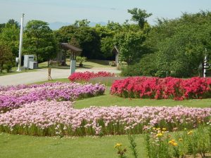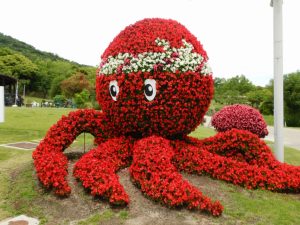 東浦口ゲート前ではベゴニアがきれいに咲き、ゆでダコと桜鯛になっています。
