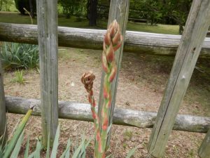 つぼみのついた花茎がアスパラにそっくりなイトラン。葉っぱに糸状のものがピラピラついています。