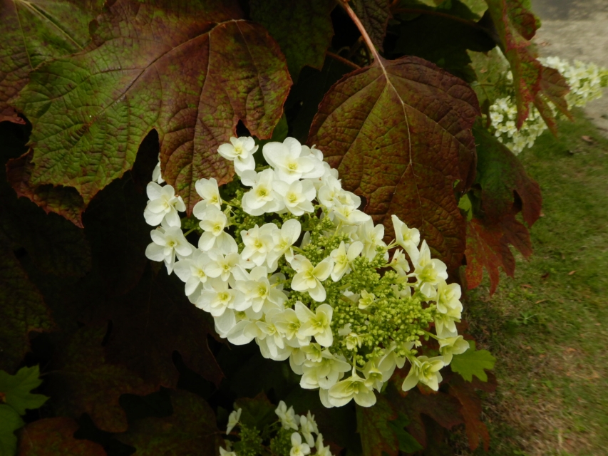 カシワバアジサイ(場所: 花の丘道、芝生広場海側園路沿いほか)