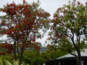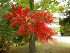 瓶を洗うブラシそっくりな花、ブラシノキ。白いお花の木はお先にほぼ終了です。残すは赤のみ。