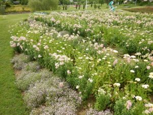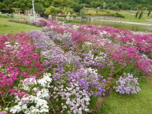 大地の虹北花壇の花々(ナデシコ、スターシスほか)(場所:大地の虹北花壇)