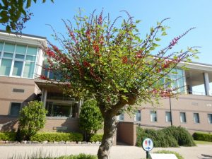 日差しの強いこの季節に、真っ白な雪が積もったように見える大きな木。まさに‘スノー・イン・サマー(夏の雪)’です。近くで見ると、化繊でできた綿みたいですよ。気になっちゃうビジュアルなため皆さん吸い寄せられ、この時期一番人気!なのでアジサイより前にご紹介しました。白くてきれいな期間は短いので(次の花情報改訂時にはピーク過ぎになっているかも)、ご覧になりたい方はなるべくお早めに。