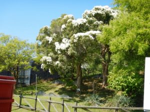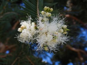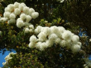 メラレウカ‘スノー・イン・サマー’:見ごろ  場所:移ろいの庭周辺、東浦口ゲートそば