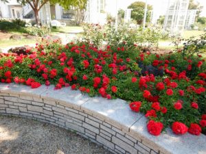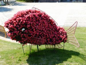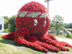 東浦口ゲート前ではベゴニアがきれいに咲き、ゆでダコと桜鯛になっています。