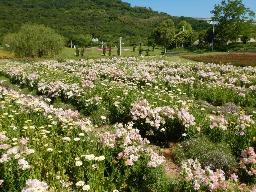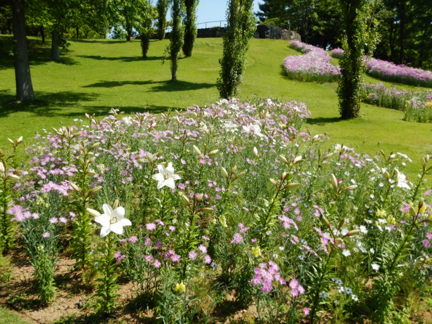 大地の虹北花壇の花々(ナデシコ、スターシスほか)(場所:大地の虹北花壇
