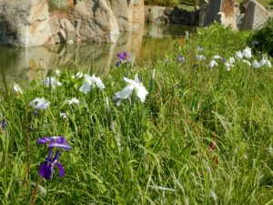 この辺のお花が目に入り始めると、もうすぐ夏が来るなぁと。タコの立体花壇近くの水辺で一通りご覧いただけますが、ハナショウブは立体花壇花火鳥そばの水辺が見やすいです。