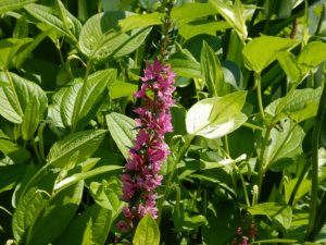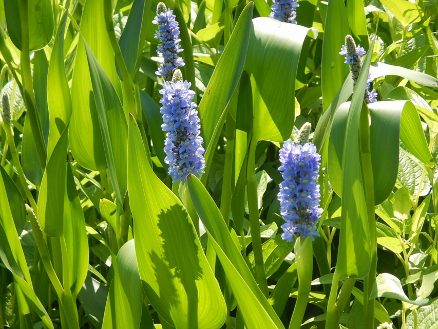 写真一枚目:東浦口ゲートそば、二枚目:ミソハギ、三枚目:ポンテデリア、四枚目:ハンゲショウ、五枚目:ガマ、六枚目:ハナショウブ