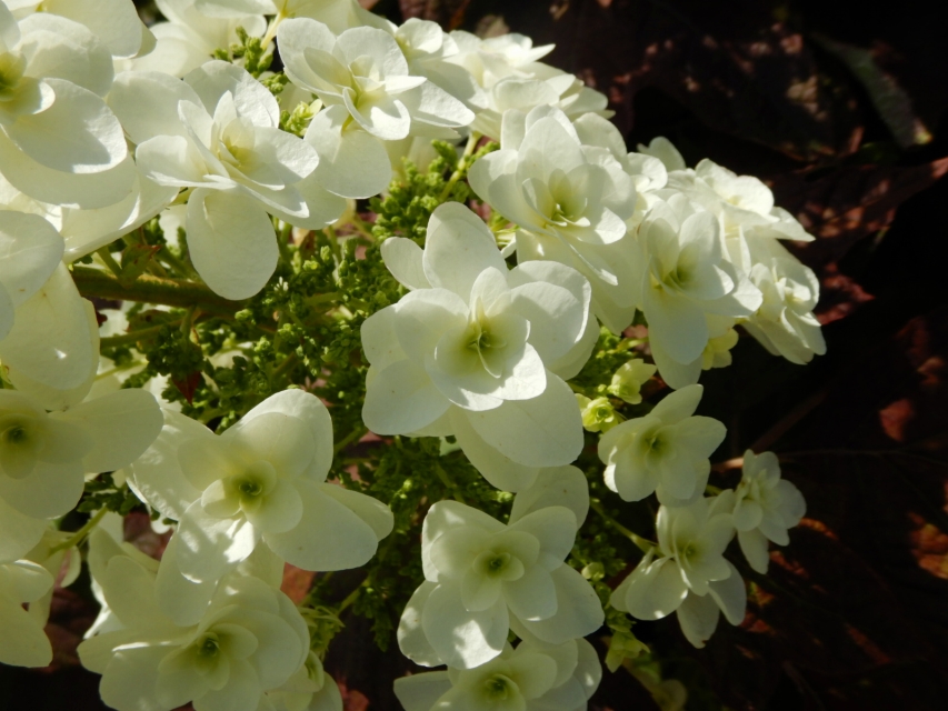 葉っぱがカシワの葉っぱの形に似ているカシワバアジサイ。花の集合体は盛り塩かドリルか、といった尖ったユニークな形状。