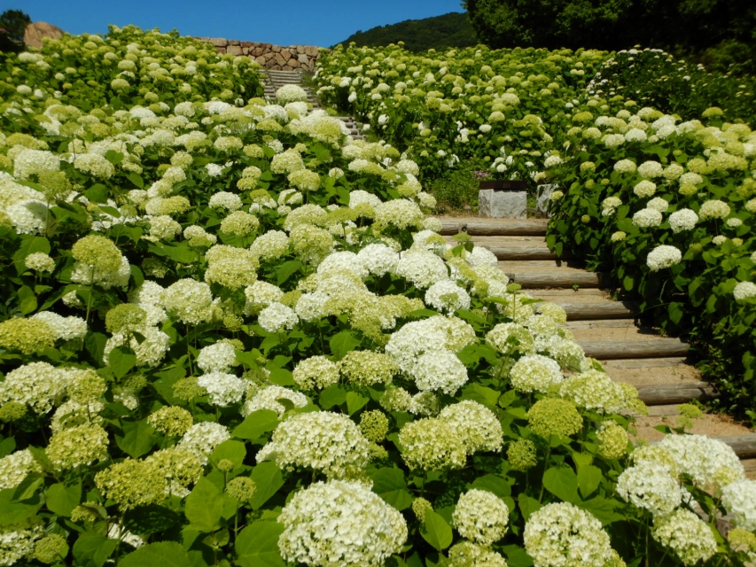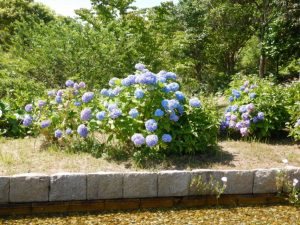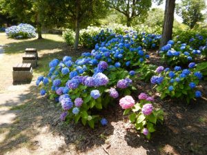 アジサイ:一部見ごろ  場所:空のテラス周辺、せせらぎ広場ほか