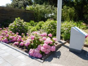 スクスク育ったペチュニアは近くで見るのもいいですが、空のテラスから見てもきれい。海と一緒に見れますよ。アジサイを見るついでにどうぞ。