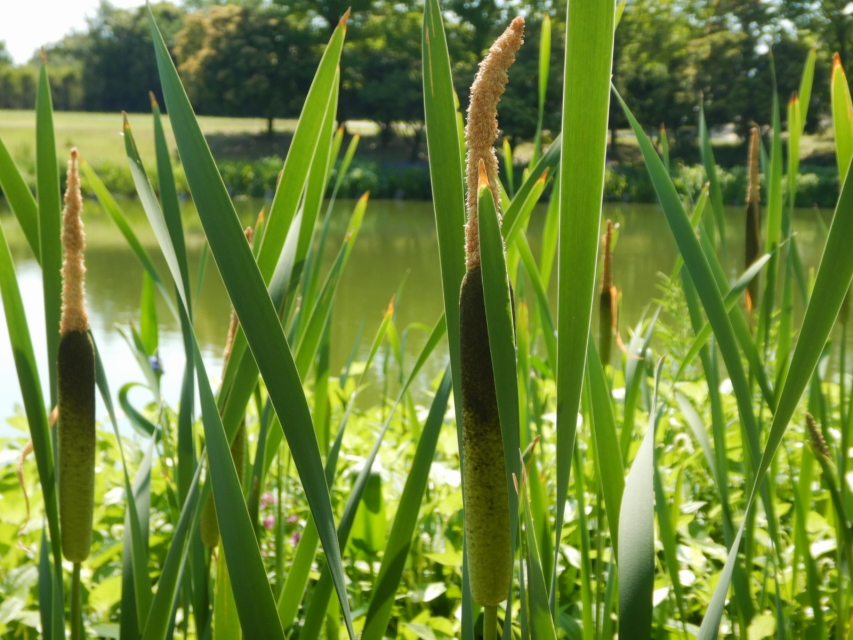白くなったハンゲショウが増えてきています。ハンゲショウの他、ポンテデリア、ミソハギ、ガマがタコの立体花壇近くの水辺でご覧いただけます。ハナショウブは終わりに近づいています。