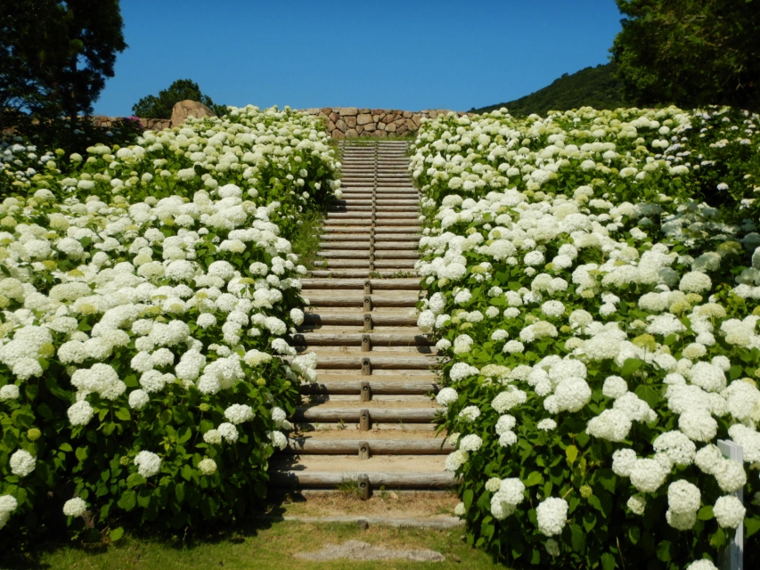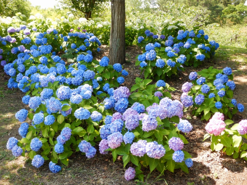 カシワバアジサイ(場所: 花の丘道、芝生広場海側園路沿いほか)