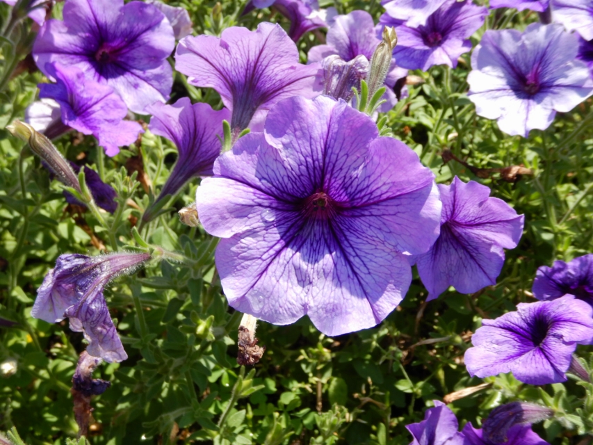 スクスク育ったペチュニア。通りかかって近くで見るもよし、空のテラスから見おろすのもよし。空のテラスはアジサイを見るついでに行ってみてください。