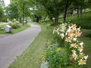ポプラの丘に咲いていたユリは終わりましたが、そこから淡路口ゲートに向かう園路沿いに植えているユリが咲いてきました。少しずつですが複数種のユリを植えていますので、何かしらが咲いていると思います。