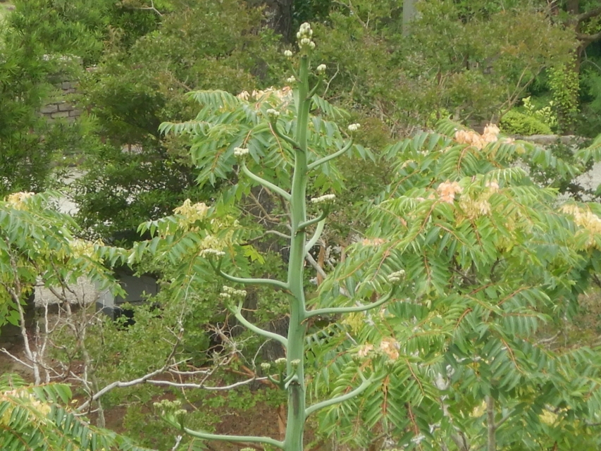 花茎の先が細かく分かれてきました。過去の例だと8mくらいまで大きくなり7月に開花なので、もうすぐなのではと思います。