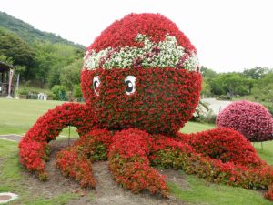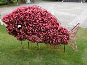 東浦口ゲート前ではベゴニアがきれいに咲き、ゆでダコと桜鯛になっています。