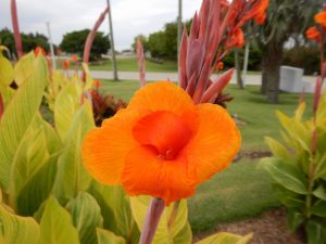今年のカンナは大きく、花付きも現在のところバッチリ!葉っぱもきれいです。