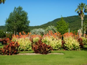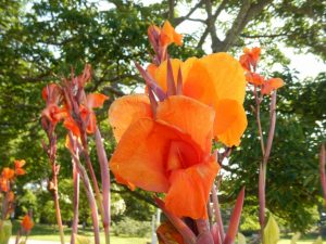 今年のカンナは大きく、花付きも現在のところバッチリ!葉っぱもきれいです。