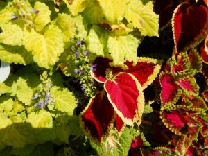 大地の虹北花壇にいるアヒルはコリウスでできており、ここ数日で紫色の小花が開花し、葉っぱもモサモサ増えています。