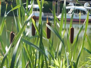 ピンク色のミソハギ、茶色の棒のようなガマは見ごろです。真夏は開花量に波がある水色のお花(ポンテデリア)は、本日もほとんど咲いていませんでした。