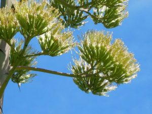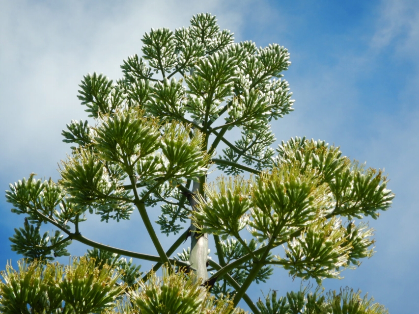 数十年に一度開花する珍しい花と言われているアオノリュウゼツラン。今年は1株ニョキニョキ育ち、多分22日(月)に開花したようです。今年は辰(‘竜’)年ですし、‘竜’舌蘭の開花は縁起がいいのではないでしょうか!(← テキトーな推測)