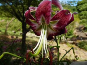 日陰でヒッソリ咲く小ぶりのユリ、カノコユリ。1株に2~15輪の花が咲きますが、各株につき開花数が半分以下になってきました。もうすぐ終わります。