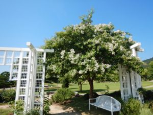 園内各所にちょっとずつあるのですが、移ろいの庭のサルスベリ類は見ごろとなり、花の谷や子供の森周辺などでも咲き始めました。