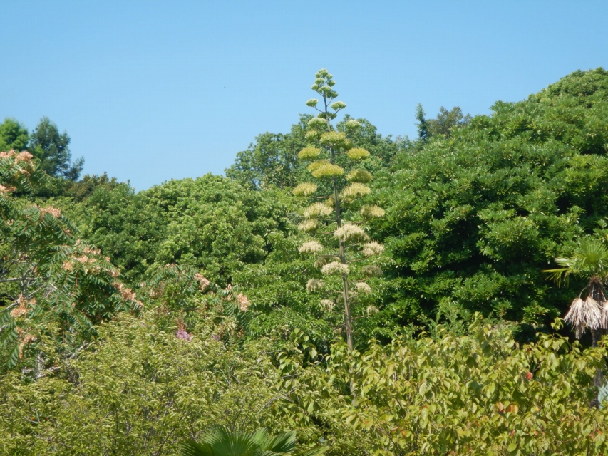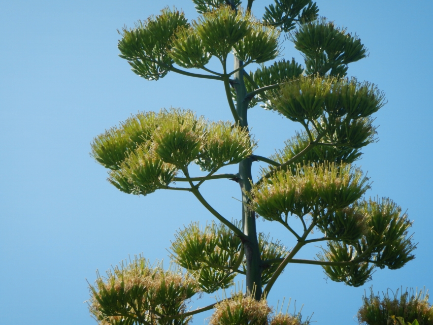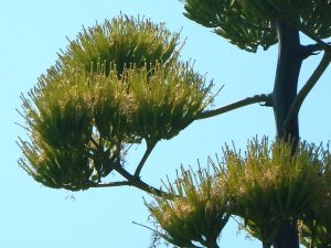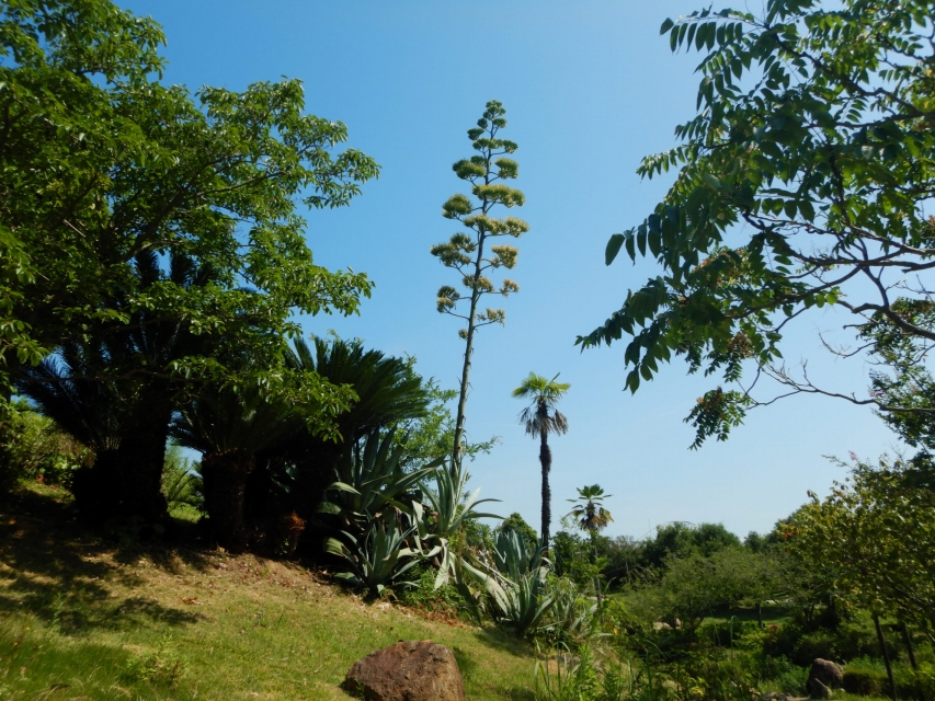 数十年に一度開花する珍しい花と言われているアオノリュウゼツラン。今年は1株ニョキニョキ育ち、多分22日(月)に開花したようです。今年は辰(‘竜’)年ですし、‘竜’舌蘭の開花は縁起がいいのではないでしょうか!(← テキトーな推測)