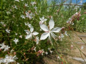 ガウラ(白蝶草)(場所: 海岸口ゲートそば、移ろいの庭階段花壇横、花の丘道ほか)