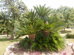 ソテツ(場所: 海のテラス周辺、淡路口ゲート周辺、花の中海周辺(花の丘道そば)ほか)