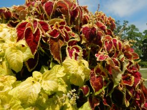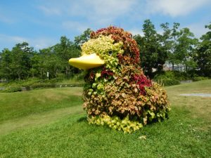 立体花壇「アヒル」のコリウス(場所:大地の虹北花壇)