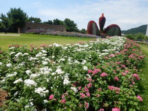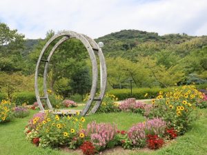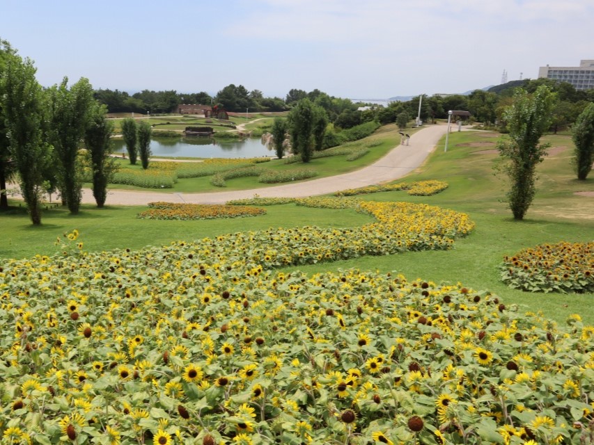 写真一~四枚目:ポプラの丘、三枚目:海のテラス周辺、四枚目:淡路フォトリング花壇