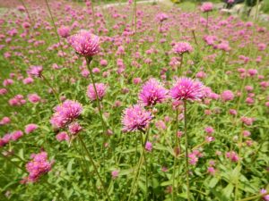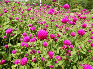 コロコロ丸くてかわいいセンニチコウ。1つ1つの花のかたまりが小さいので、写真を撮る際には寄り気味をお勧めします。全体的に花数が増えて色がハッキリしてきました!花火みたいな花形のファイヤーワークス(三・四枚目)はスパイシーな香りがします。