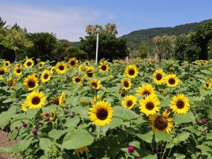 移ろいの庭のヒマワリは終了しました(5日以降秋のマリーゴールドへ植替え予定)。