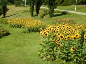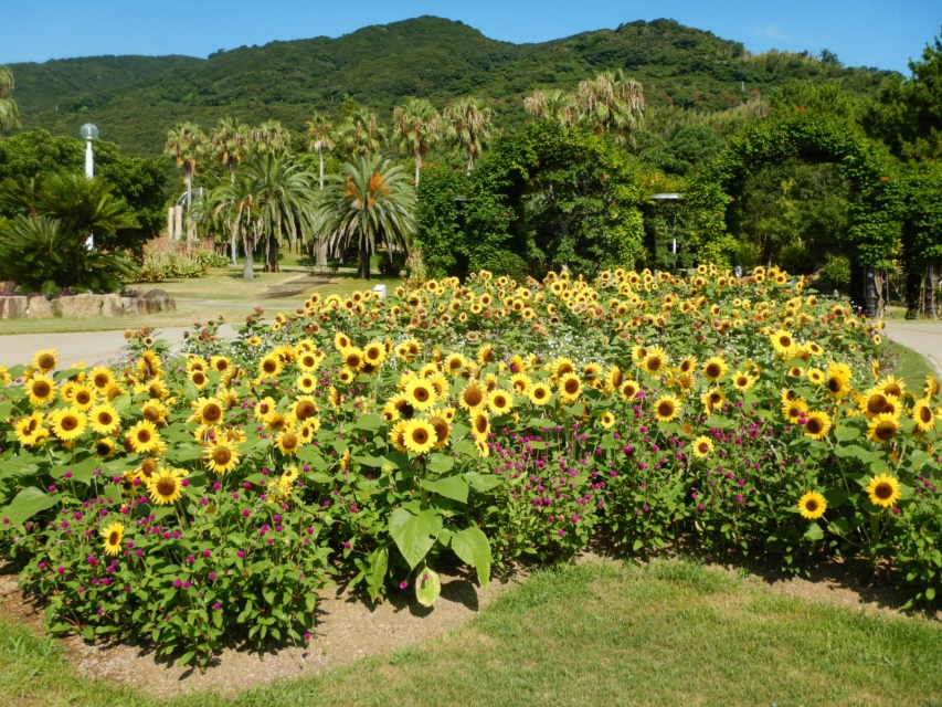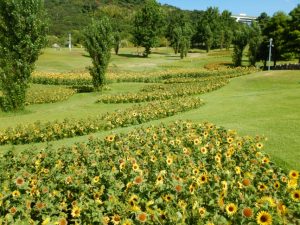 海のテラス周辺のヒマワリは、小規模ですがきれいに咲いています。