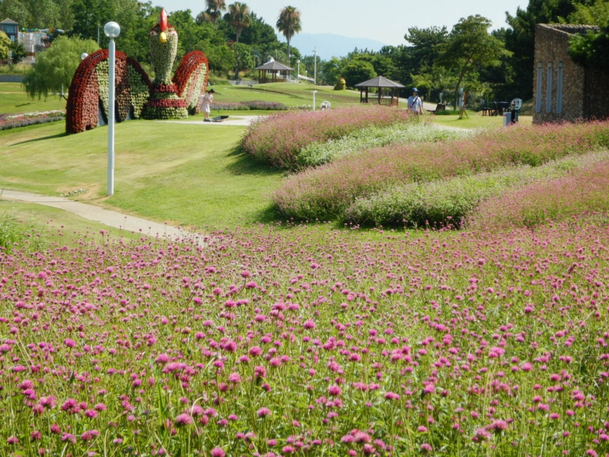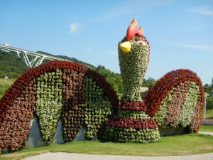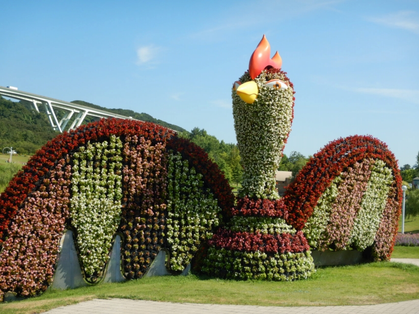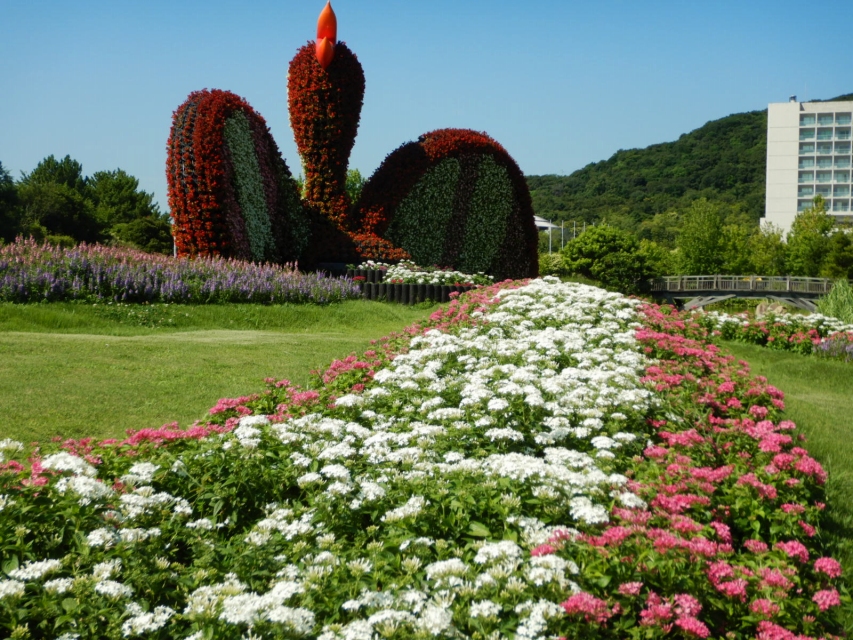 立体花壇「花火鳥」(ベゴニア、ペンタス、アンゲロニア)(場所:大地の虹)