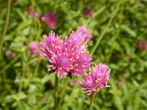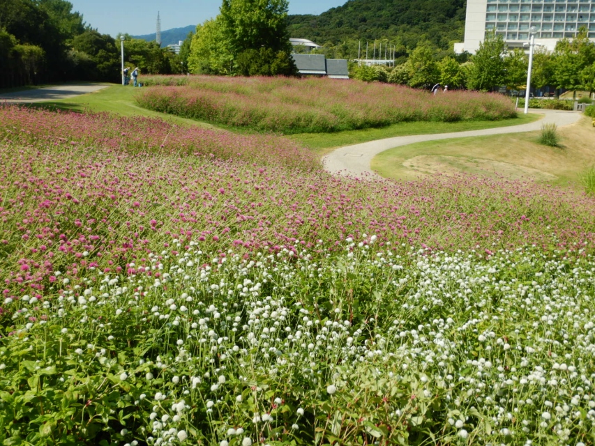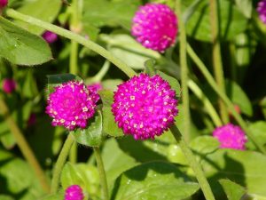 コロコロ丸くてかわいいセンニチコウ。1つ1つの球状の花のかたまりが小さいので、写真を撮る際には寄り気味をお勧めします。かわいい花なのに全く甘くない、大人向け(?)の香りがしますので、是非近寄って嗅いでみてください。