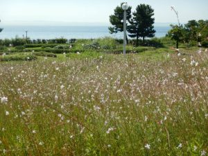 ガウラ(白蝶草)(場所: 海岸口ゲートそば、移ろいの庭階段花壇横、花の丘道ほか)