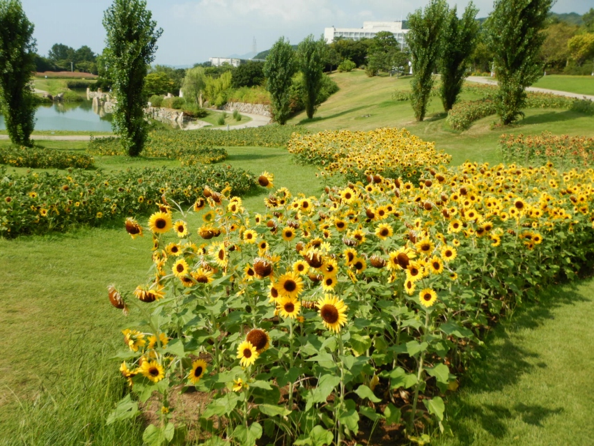 ヒマワリ:終盤(※19日(月)以降に抜き取ります)   場所:ポプラの丘、海のテラス周辺他