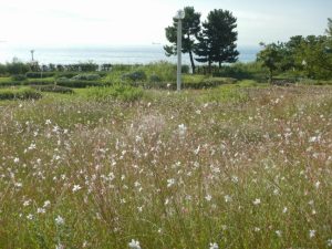 ガウラ(白蝶草)(場所: 海岸口ゲートそば、移ろいの庭階段花壇横、花の丘道ほか