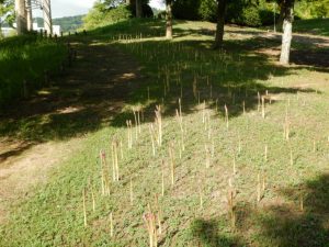 このお花は、葉っぱは春先にだけ出現し、この時期は花茎だけ土からニョキッと出てきます。なので、たくさん咲いている様子は面白い&かわいいですよ。