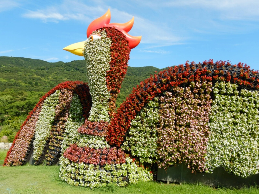 立体花壇「花火鳥」(ベゴニア、ペンタス、アンゲロニア)(場所:大地の虹