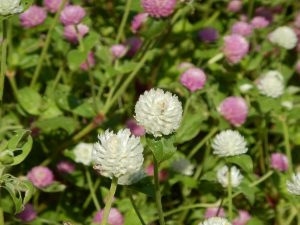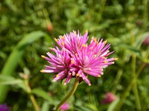 コロコロ丸くてかわいいセンニチコウ。1つ1つの球状の花のかたまりが小さいので、写真を撮る際には寄り気味をお勧めします。かわいい花なのに全く甘くない、大人向け(?)の香りがしますので、是非近寄って嗅いでみてください。