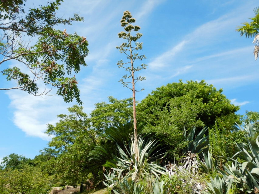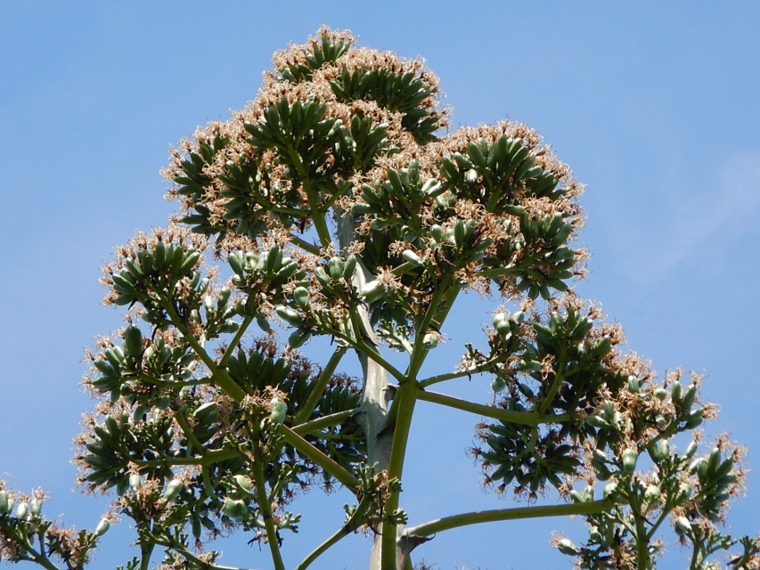 数十年に一度開花する珍しい花と言われているアオノリュウゼツラン。今年は1株ニョキニョキ育ちました。もう咲き終わっており、今は実がなり始めています。
