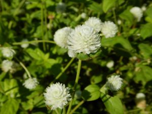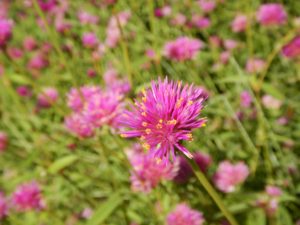 コロコロ丸くてかわいいセンニチコウ。1つ1つの球状の花のかたまりが小さいので、写真を撮る際には寄り気味をお勧めします。かわいい花なのに全く甘くない、大人向け(?)の香りがしますので、是非近寄って嗅いでみてください。