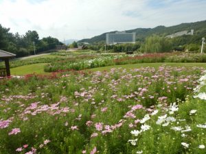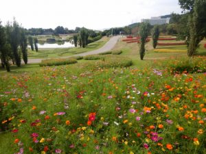 お待たせしました、大地の虹北花壇のコスモスが見ごろ始めとなりました。