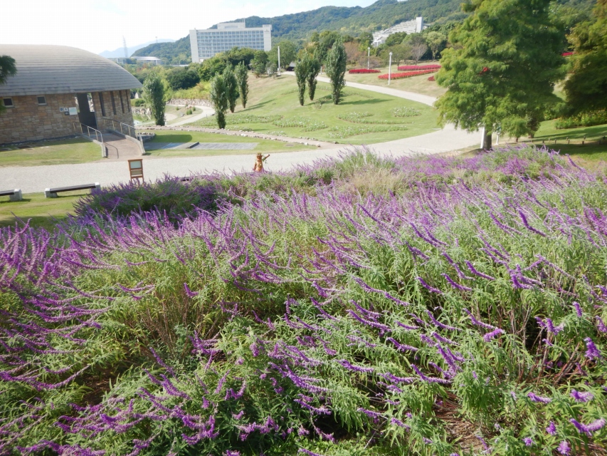 暑い日には非常に暑っ苦しい、フワフワモサッとした手触りのお花。丘がこんもりと紫色に染まっています。遠くから見ると涼やかな色ですよ。