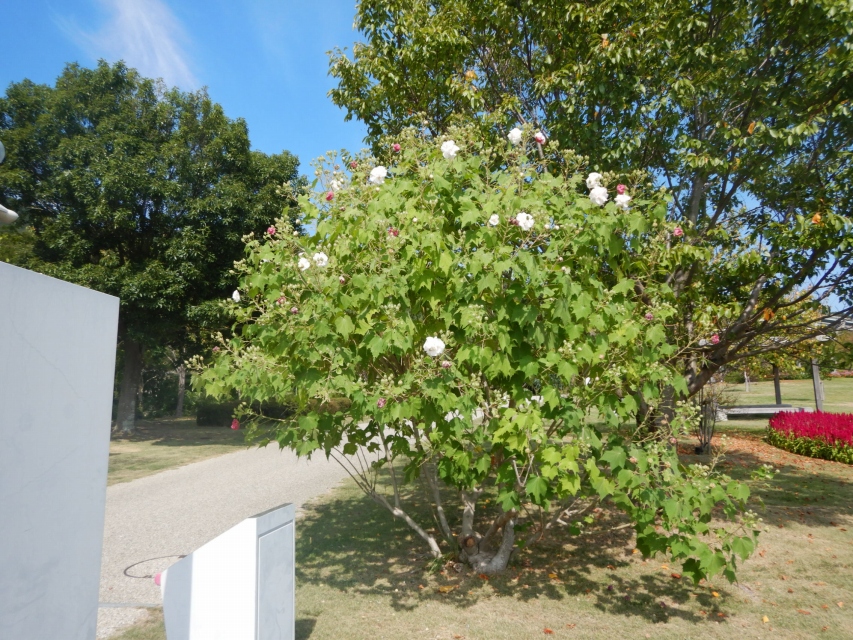 フヨウ、スイフヨウ(酔芙蓉)(場所: 花の丘道、ポプラの丘~天壇テラス園路沿い)